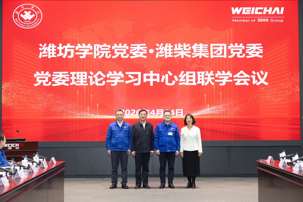 本网讯 为深入学习贯彻习近平总书记关于树立和践行正确政绩观的重要论述,深化校企协同育人,共商产教融合高质量发展新路径,4月14日下午,学校党委与潍柴集团党委开展理论学习中心组联学活动。学校党委书记来逢波,党委副书记、校长王霞,潍柴集团党委书记、董事长马常海出席活动。会议由潍柴集团党委副书记、工会主席黄维彪主持。