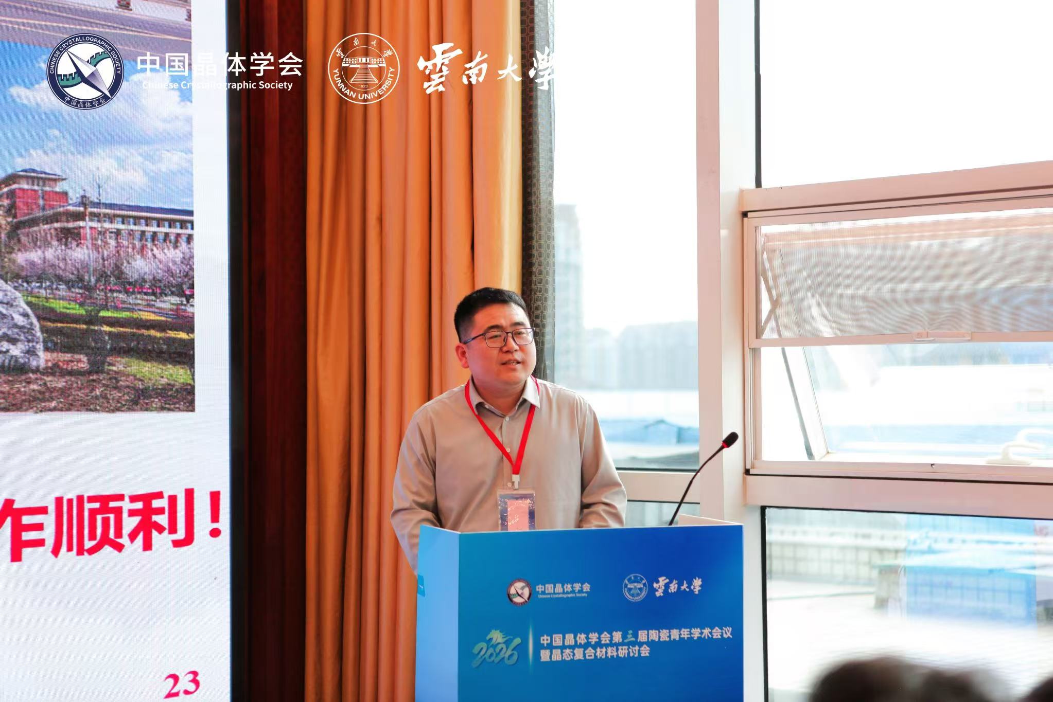 为促进学术交流,展示热电材料领域最新研究成果,2026年4月9日至12日,由中国晶体学会与云南大学联合主办的“中国晶体学会第三届陶瓷青年学术会议暨晶态复合材料研讨会”在云南昆明召开。物电学院孙兵教授受邀出席本次大会,并在热电材料分会(分会5)作邀请报告。