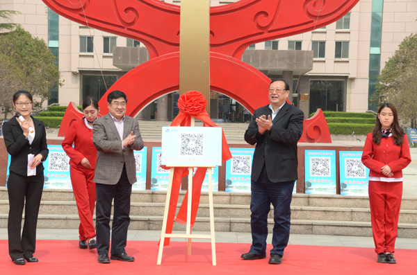 本网讯  4月8日,我校官方微信平台上线启动仪式在图书馆楼前举行。党委书记孙文亮、校长冯滨鲁出席仪式并揭牌。