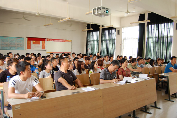 楚老师首先用一幅多思维发散性漫画引起大家的反思。楚老师据习近平总书记七一讲话的内容,提出作为有九十六年建党历史、三十九年改革历史的中国共产党为什么能实现“三次伟大的飞跃”的问题,从三方面深刻解释了历史之问、现实之问以及未来之问。历史之问中,楚老师讲述了党性修养的内涵及历史内容,并指出要有信仰,要对人民怀有赤子之心;现实之问中指出了党性修养的现实拷问及存在的问题;未来之问中,楚老师解释了“赢”字的构造,并强调要加强理论修养和素质修养。