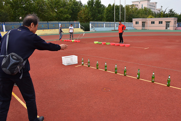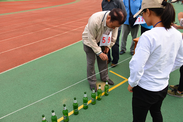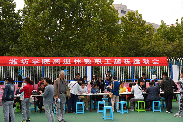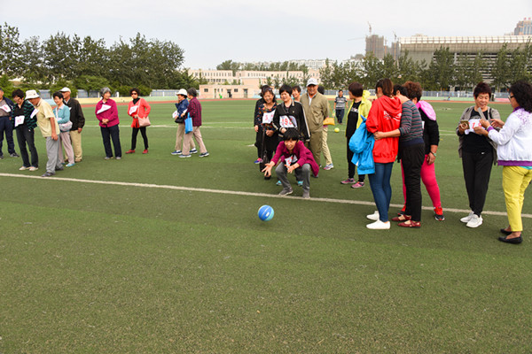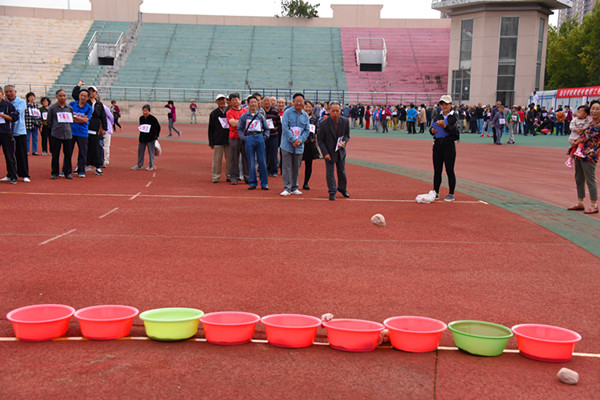 本网讯 9月28日,潍坊学院离退休教职工金秋趣味运动会在学校田径运动场举行。360余名离退休老同志参加了篮球撞柱、排球保龄、投筷进瓶、夹玻璃球、套圈、投沙包等6个项目的比赛。