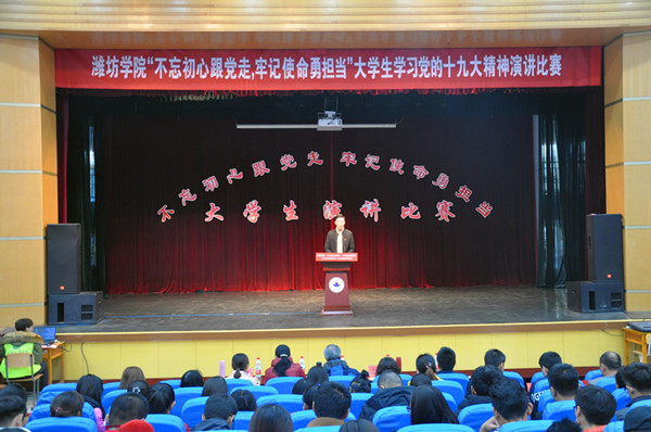 本网讯 11月24日下午,学校在闻韶楼报告厅举行潍坊学院“不忘初心跟党走,牢记使命勇担当”大学生学习党的十九大精神演讲比赛决赛。