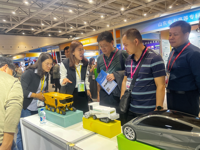 在山东专区展位上,我校展示了近年来建设高水平应用型大学的丰硕成果,突出了在产教融合培养社会急需人才、科教融汇赋能产学研协同发展、职普融通助力职业教育创新发展、校城融生实现协同发展合作共赢四个方面的经验做法。展位展出了磁悬浮地球仪,以及X-SUPPORT供给车模型、“cross风”新能源汽车模型、助力乡村振兴文创产品等十余件学生作品,吸引了相关领域从业者、学者和学生的关注。