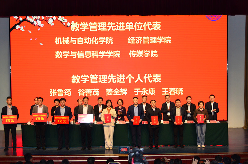 会上,王守全宣读了《关于表彰教学管理先进单位、先进个人的决定》。大会为受到表彰的先进集体和先进个人颁奖。6位代表分别从产教融合、产业学院建设、教师教学创新、学生竞赛指导等方面分享了经验和心得。王成端代表学校作了题为《全面深化教育教学改革 聚焦产教融合 加快推进高水平应用型本科高校建设 不断提高高素质应用型人才培养质量》的报告,全面总结了学校第四次教学大会以来教育教学方面取得的工作成效,提出了今后五年教学工作的基本思路,围绕六个方面对做好教育教学工作作出了详细部署安排。