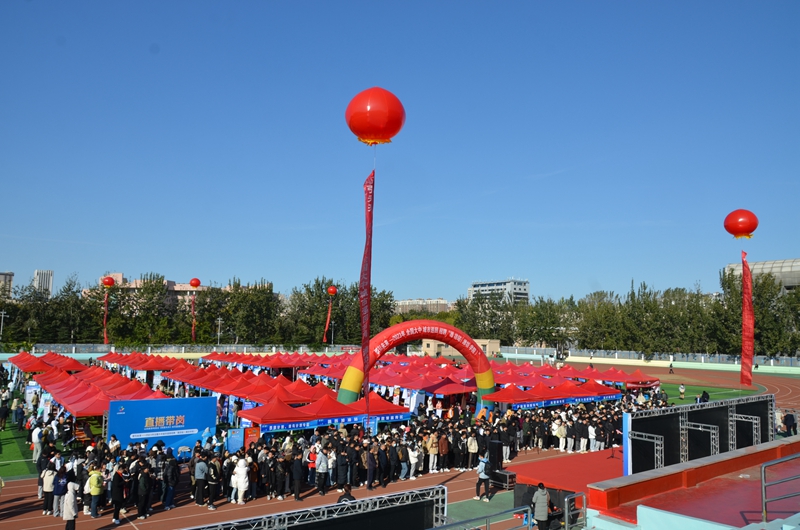 本网讯 为深入贯彻落实党的二十大精神和党中央、国务院关于促进高校毕业生就业的决策部署,千方百计促进高校毕业生高质量充分就业,11月10日上午,“职引未来—2023年全国大中城市巡回招聘‘潍坊站(潍坊学院)’”专场招聘活动在我校体育场成功举办。此次活动由人力资源和社会保障部发起,山东省人力资源和社会保障厅主办,我校和潍坊市人力资源和社会保障局联合承办。山东省公共就业和人才服务中心人力资源市场服务处副处长于东鹏,学校党委委员、副校长任立春、潍坊市公共就业和人才服务中心党委委员、副主任王金升出席本次活动。