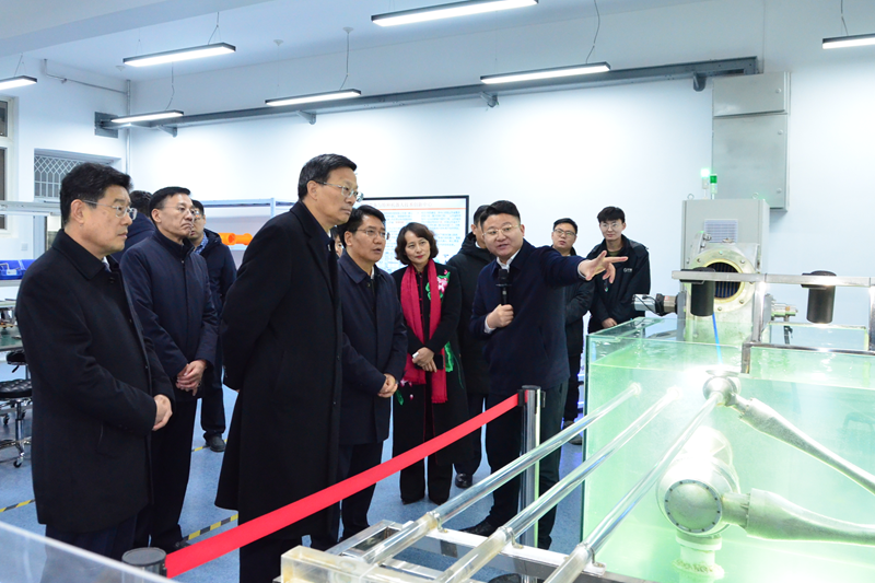 在科教产融合创新中心,邓云锋听取了创新中心在校城融合、服务地方等方面取得的成果汇报,详细了解了引企入校共建协同研发平台及其成果转化情况,实地察看了磁悬浮低碳节能动力装备技术创新中心、新能源发电及储能装备技术中心、企业家学院、鲑鳟鱼设施健康养殖联合研发中心、柔识智能数字打印技术产业研究院、热数字孪生技术研发中心、机器人实验室、RCEP研究中心等研发机构。他要求创新团队要立足服务山东和区域产业发展重大科技需求,进一步提高原始创新水平,增强技术成果的转移转化能力。