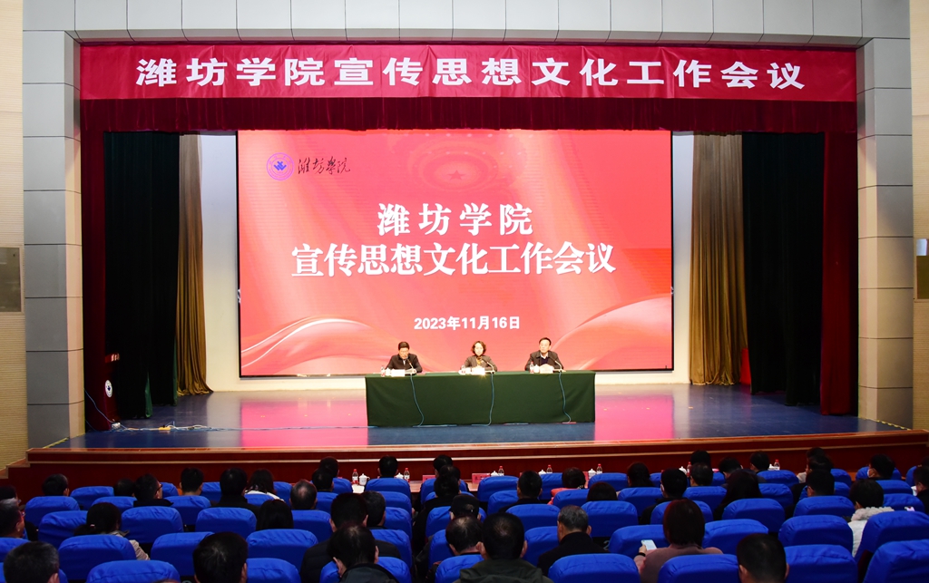 11月16日,学校召开宣传思想文化工作会议,传达全国全省宣传思想文化工作会议精神,就下一步工作贯彻落实作出部署。会议要求,要扎实推动全国全省宣传思想文化工作会议精神落地见效,坚持不懈用习近平新时代中国特色社会主义思想铸魂育人,严格落实意识形态工作责任制,深入实施“全环境育人工程”和大学文化涵养润心工程,聚焦服务学校中心工作,强化宣传力量协同联动,讲好潍院故事、擦亮潍院名片,凝聚思想共识,激发奋进力量。会后,狠抓会议精神落实,启动大学文化涵养润心工程,宣传思想文化工作取得新进展,获评山东省新时代党的创新理论宣讲基地、山东省铸牢中华民族共同体意识基地。