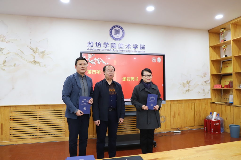 会上,美术学院相关负责同志宣读了《潍坊学院校友会章程》,选举产生了美术学院校友分会第一届会长、副会长、秘书长、理事。李英德为美术学院校友分会第一届荣誉会长刘雪梅、会长王勇颁发聘书。