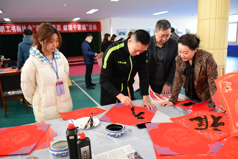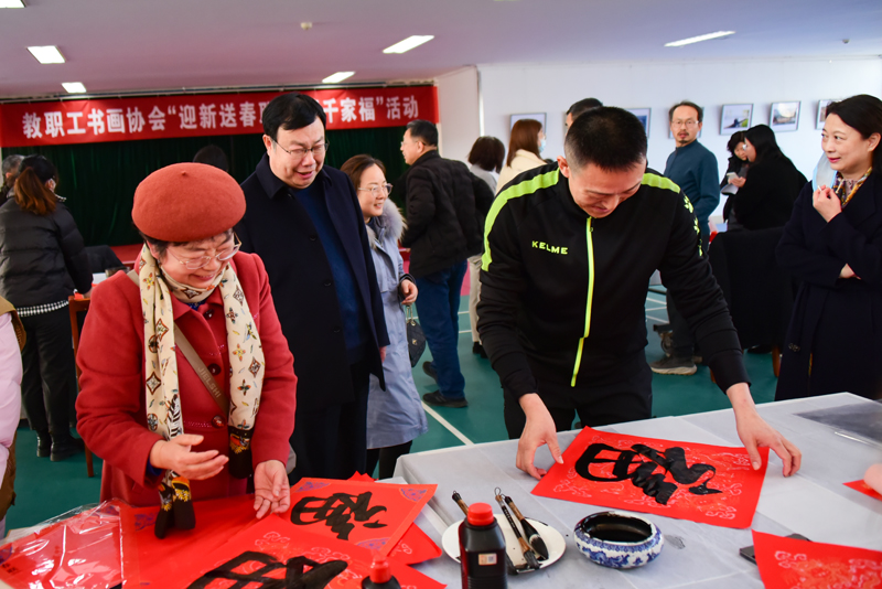 本网讯  112日下午,学校教职工书画协会在行政楼8楼教职工之家举办了2024年“迎新送春联,献瑞千家福”送万福进万家书法公益活动,学校党委委员、副校长王成端参加活动。