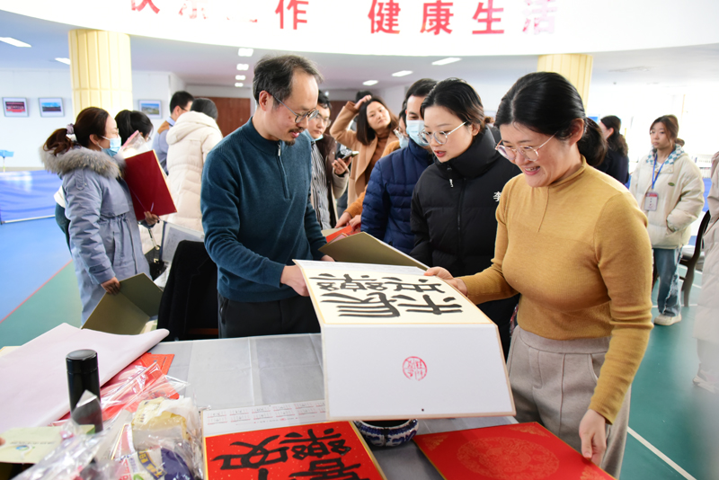 活动现场,协会会员挥毫泼墨,笔走龙蛇,将一幅幅寓意吉祥、充满祝福的春联和“福”字赠送给参与活动的教职工。教职工们表示,这些春联和“福”字不仅寄托了春节的美好祝愿,同时感受到了传统文化的深厚底蕴。