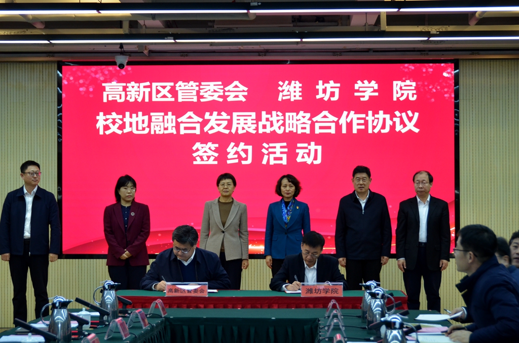 学校与潍坊高新区管委会签署校地融合发展战略合作协议