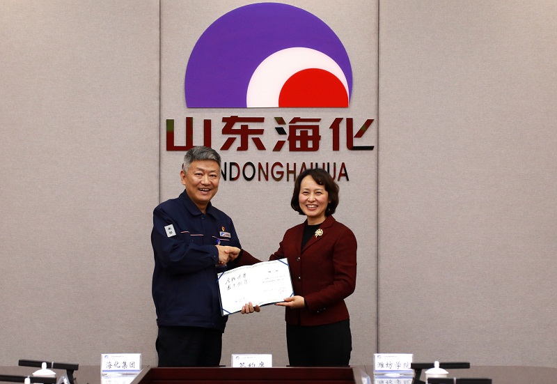 仪式上,徐梅为海化集团孙令波、迟庆峰、孙志颁发潍坊学院客座教授聘任证书,李英德与迟庆峰代表校企双方签署战略合作协议,赵卫红与李进军共同为海化集团“潍坊学院就业实习基地”揭牌。仪式结束后,双方围绕产教融合、科技创新、企业用工需求等方面工作进行座谈探讨。