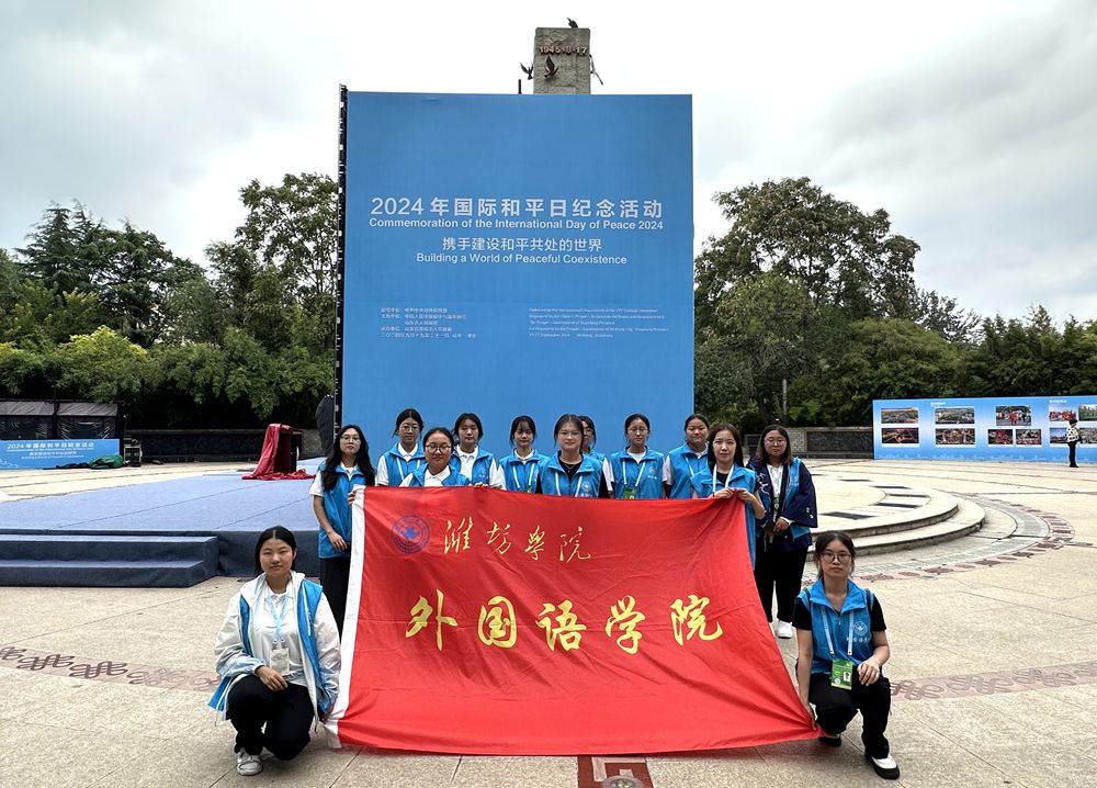 9月19日至21日,外国语学院选派30名青年志愿者参与在潍坊举行的2024年国际和平日纪念活动,为来自世界各地的80多个国家、100多个政治组织、和平团体、安全智库的嘉宾和代表提供大会志愿服务。