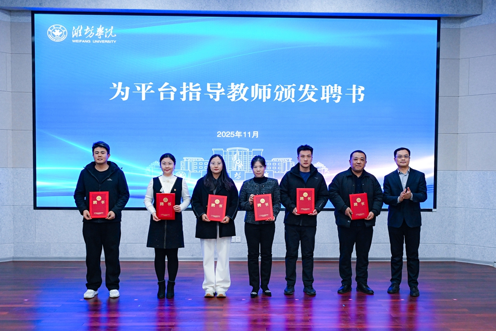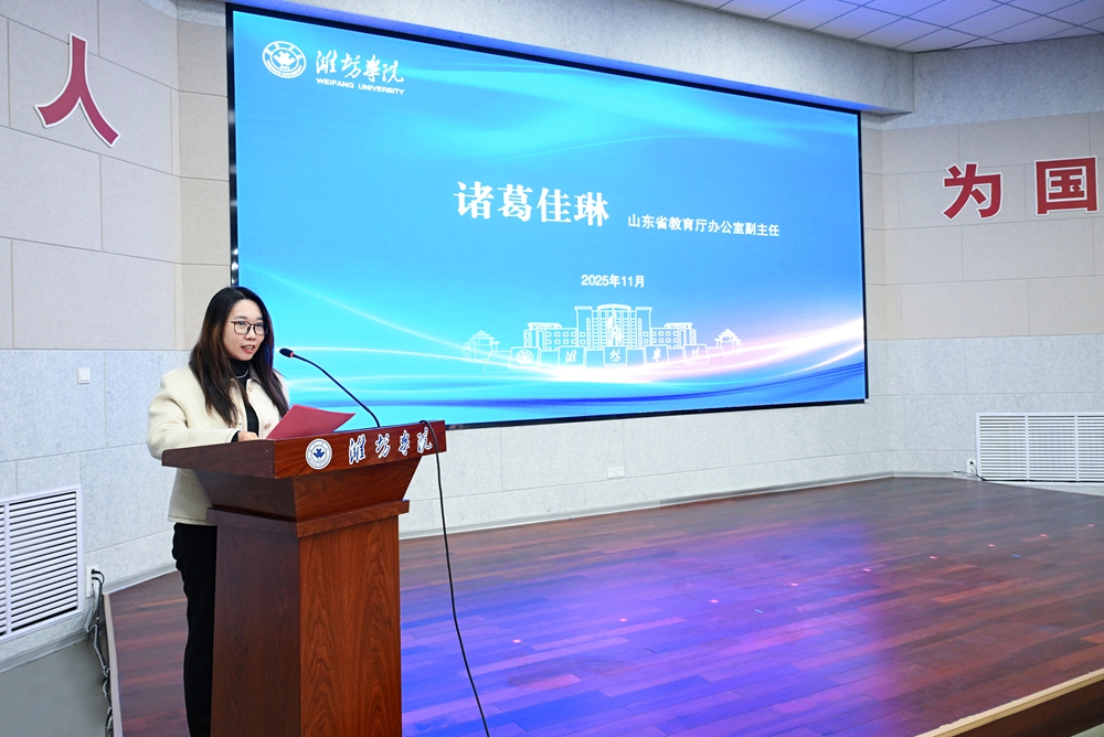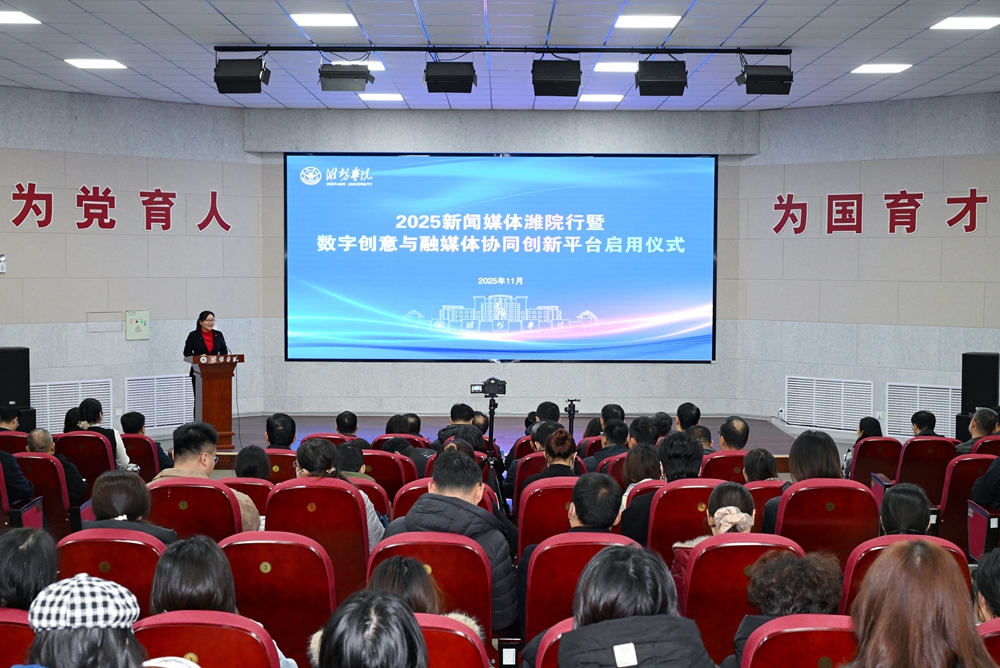 本网讯 11月18日,学校举行2025新闻媒体潍院行活动暨数字创意与融媒体协同创新平台启用仪式。学校党委书记来逢波、山东省教育厅办公室副主任诸葛佳琳出席仪式并致辞,光明日报山东记者站站长宋喜群,科技日报山东记者站站长王延斌,中国青年报山东记者站站长邢婷,山东广播电视台教育工作室主任庄红,大众日报潍坊记者站站长王佳声,潍坊市融媒体中心主任、潍坊传媒集团党委书记、董事长刘莹有,潍坊市文化和旅游局党组书记、局长高强,潍坊市新时代文明实践中心主任韩国鹏,省领导干部考试题库中心副主任崔建亮,学校党委委员、组织部部长赵加强出席活动。党委委员、宣传部部长张晓静主持活动。