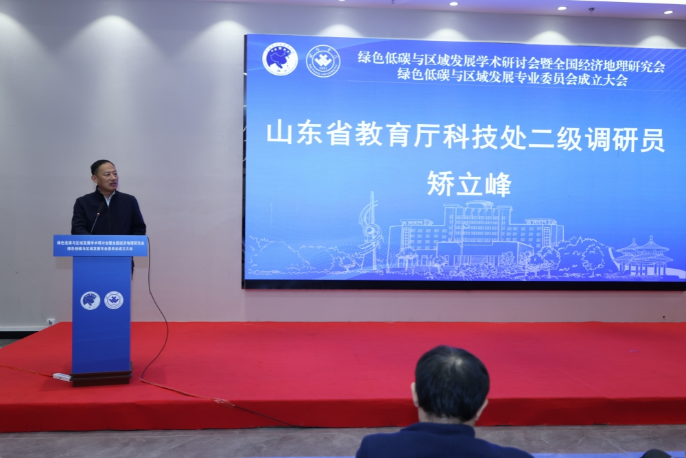 本网讯 11月29日,绿色低碳与区域发展学术研讨会暨全国经济地理研究会绿色低碳与区域发展专业委员会成立大会在学校举办。全国经济地理研究会名誉会长孙久文,全国经济地理研究会会长、中国人民大学教授张可云,潍坊市副市长狄波,山东省教育厅科技处二级调研员矫立峰,山东港口渤海湾港集团总经理王玉福,学校党委书记来逢波出席开幕式并致辞。开幕式由学校党委副书记、校长王霞主持。
