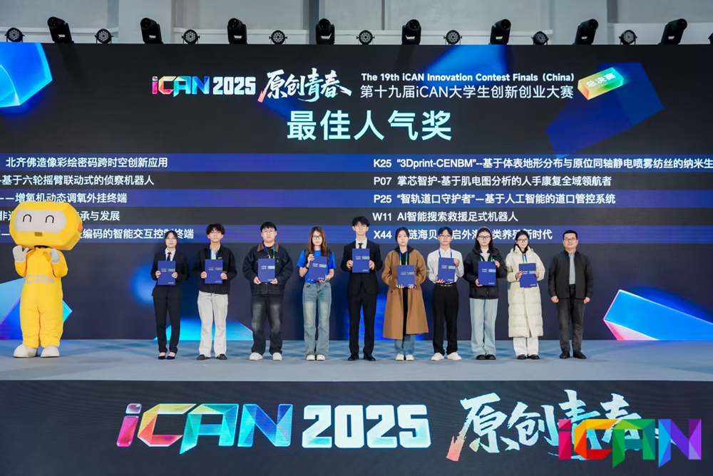 本网讯 近日,第十九届iCAN大学生创新创业大赛全国总决赛结果正式公布。学校参赛团队表现优异,获得一等奖一项、三等奖两项,并获“优秀指导教师奖”与“最佳人气奖”等荣誉。