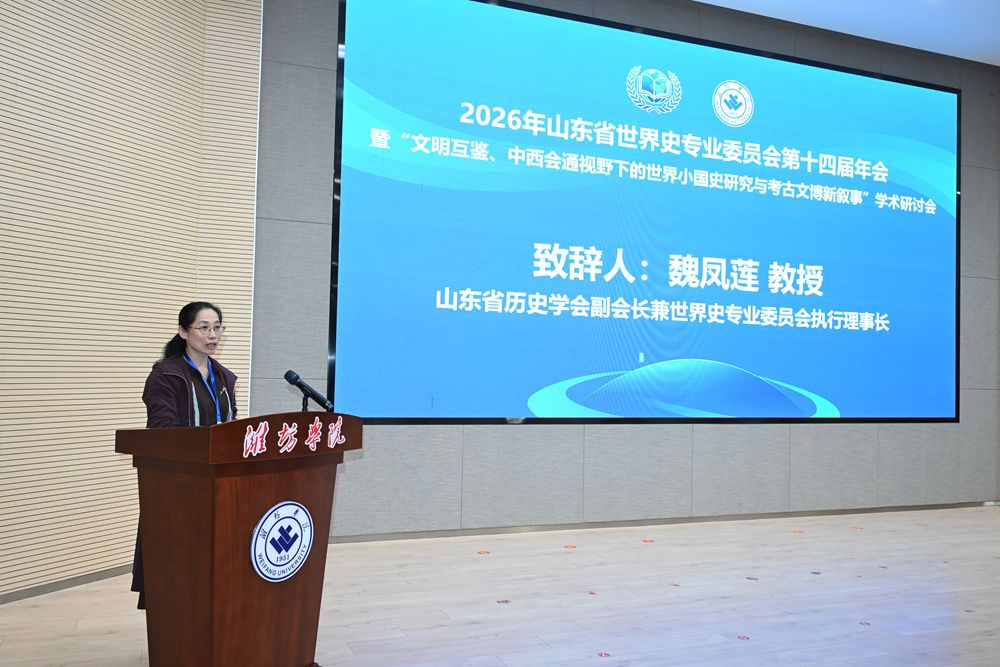 王霞对与会嘉宾表示欢迎,并简要介绍了潍坊学院的历史沿革、办学特色以及近年来在人文社会科学建设等方面取得的成果。她表示学校将以此次会议为契机,进一步深化与各高校、研究机构和出版单位的合作,共同为推进文明互鉴、丰富世界史研究贡献新的力量。